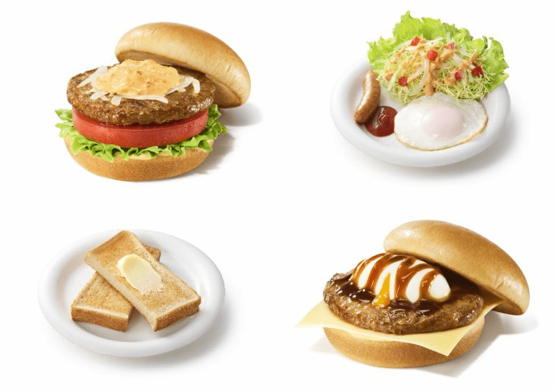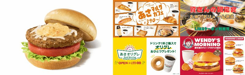 朝食時間帯限定「朝モス」メニューをリニューアル。オーロラソースでさっぱり仕上げた「朝の野菜バーガー ~オーロラソース~」や、朝からしっかりと食べたい人のための「朝のとろったまチーズバーガー ~テリヤキソース~」を新発売しました(いずれも「ソイパティ」に変更可能)。