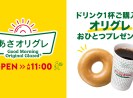 ※クリスピー・クリーム・ドーナツ ドリンク提供店舗にて実施。開店時間が11時以降の店舗は対象外となります。