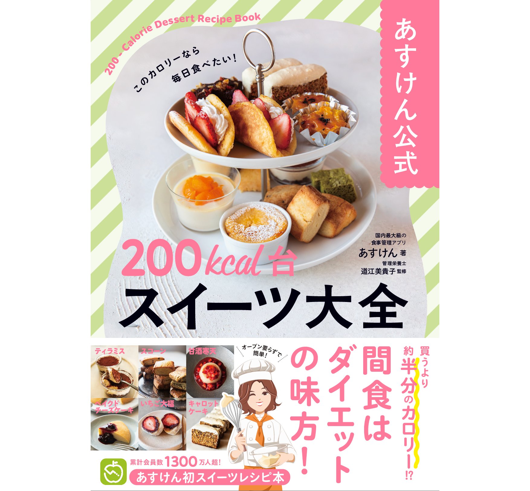 AI食事管理アプリ「あすけん」による初のスイーツレシピ本『あすけん公式 200kcal台スイーツ大全』(株式会社ワニブックス)。