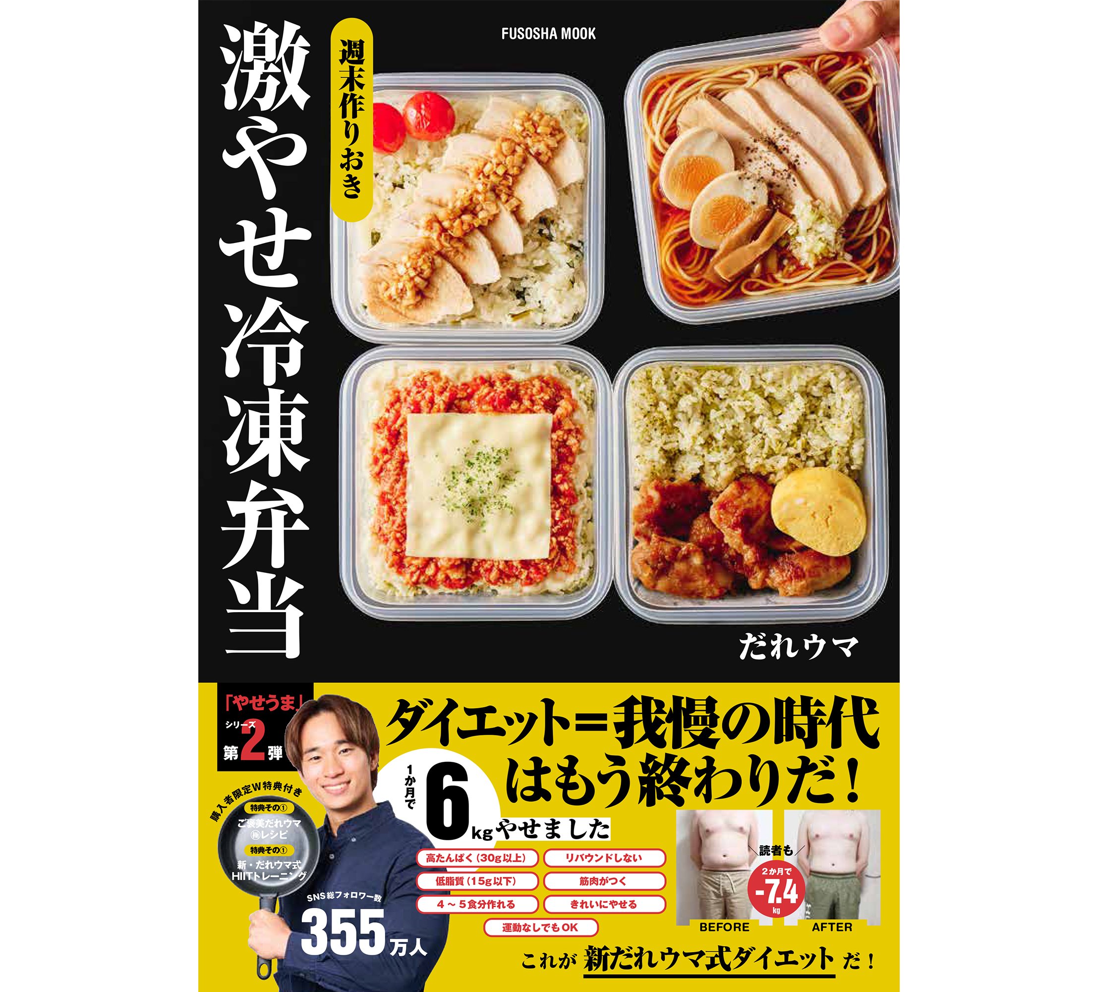 筋トレ好きの料理研究家・ダイエット料理研究家である、だれウマさんのダイエットレシピ本第2弾。週末に作りおき+平日はチンするだけで食べられちゃう100レシピを掲載しています。