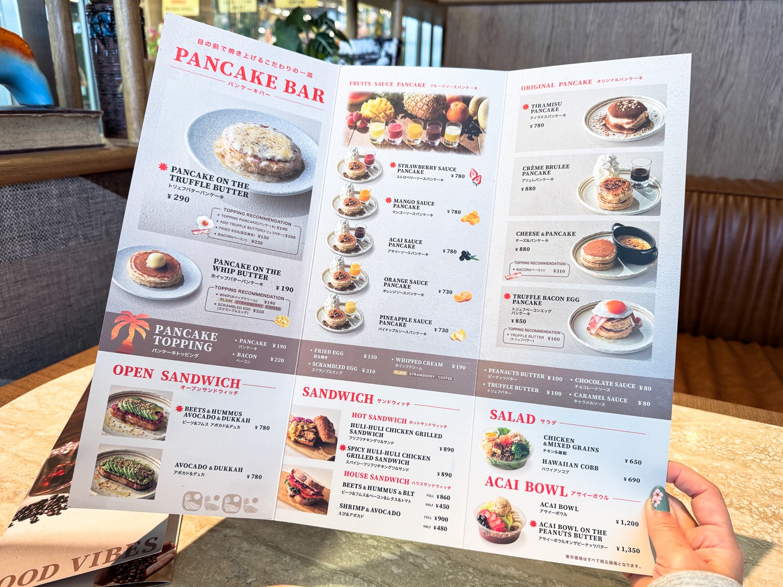 パンケーキだけじゃなく、サラダやサンドウィッチ、アサイーボウルなど、がっつり食べたいときのフードメニューも豊富で、シーンを選ばず使えるのもありがた〜い!