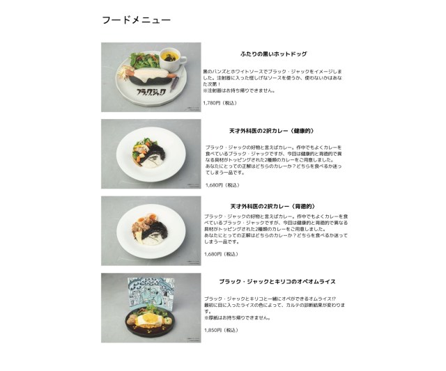 参照元:『ブラック・ジャック』コラボカフェ 公式サイト、プレスリリース