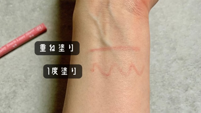 新色「01 チャーミーピンク」は、粘膜に溶け込んでくれそうなピンク色。名前の通りシアーな発色です。何度か重ね塗りしてみても、ほんのり濃い色になるぐらいの印象でした。
