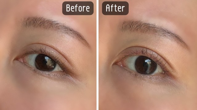 ブラックやブラウンのようなわかりやすい目力UPパワーはないものの、ピンク色でごくごくナチュラルに目が強調されたような印象に仕上がりました。