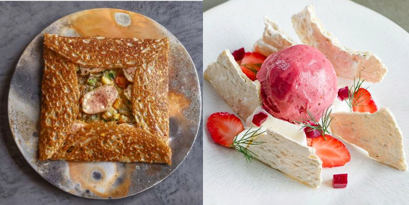 ガレット専門店「SAKURAI/サクライ」では、フランス産シードルで煮込んだ鴨胸肉のガレットや、塩キャラメルのクレープを提供。自家製ハーブ入りフォカッチャ×マグロのコンフィで仕上げた会場限定サンドイッチ、赤ワインによく合う鶏の白レバーのムース、世界大会で優勝経験のあるパティシエによるタルトショコラなども楽しめます。