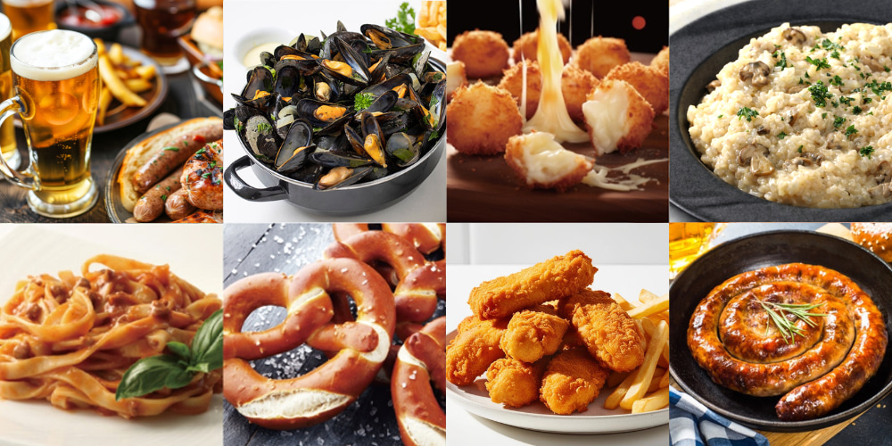 名門「ホフブロイ」をはじめ、「パウラーナー」「ケストリッツァー」「エルディンガー ヴァイスビア」といった人気のドイツビールが勢ぞろい(※一部数量限定)。日本でも愛されているベルギーのホワイトビール「ヒューガルデン」など海外のビールも充実しています。飲み比べしながらお気に入りの1杯を見つけちゃおう。