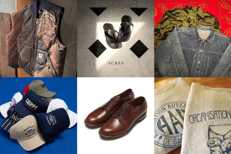ヨーロッパやアメリカからバイヤーが買い付けた1点モノの古着。イギリスやフランスのワークウェアから着想を得たファッション。アメリカ最高峰のシューメーカーによるシューズ。
