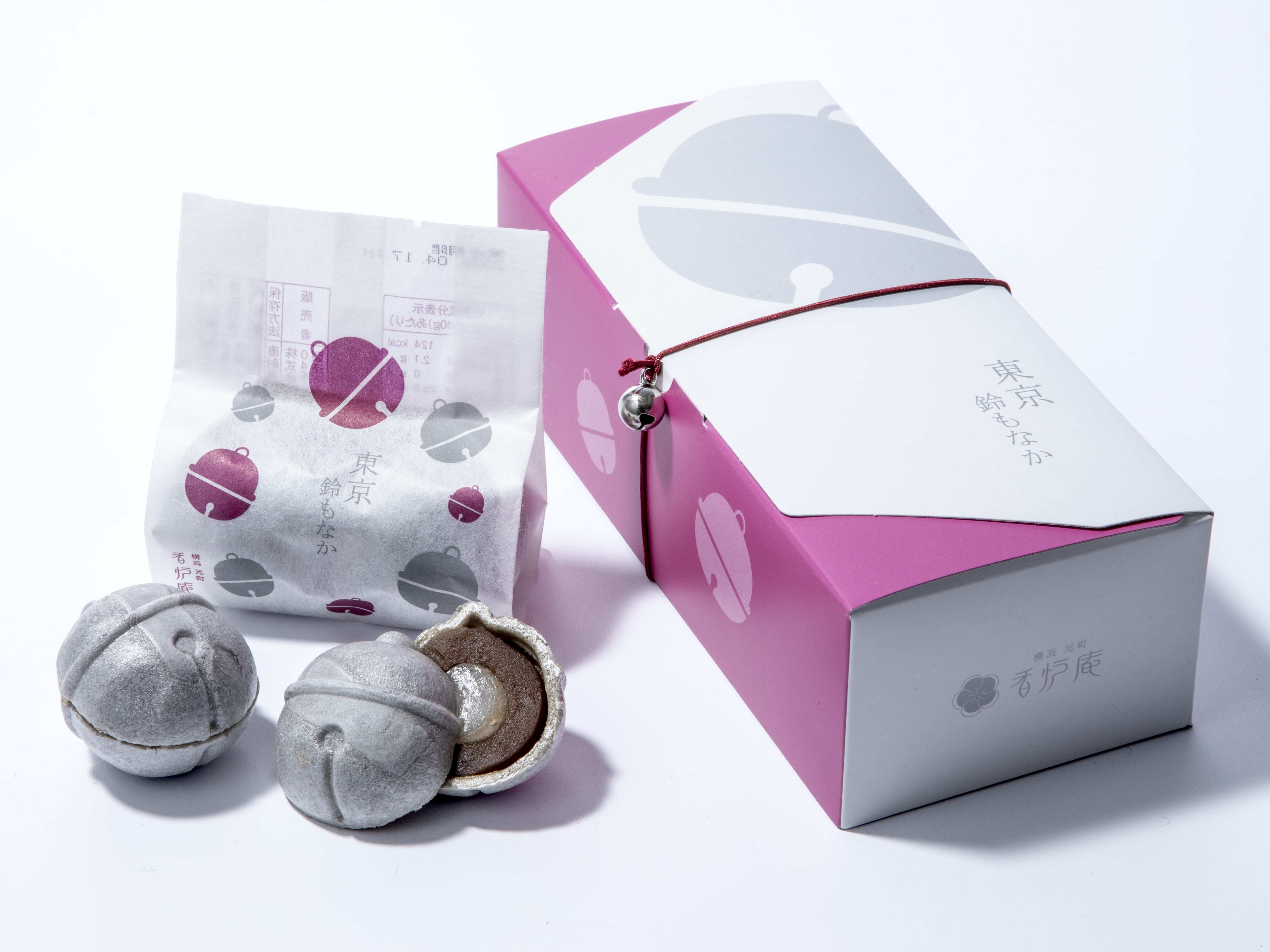 東京駅の待ち合わせ場所としておなじみ「銀の鈴」がモチーフの和菓子。甘さ控えめなこし餡+もっちりとして柔らかな求肥が、鈴形のもなかに入っています。