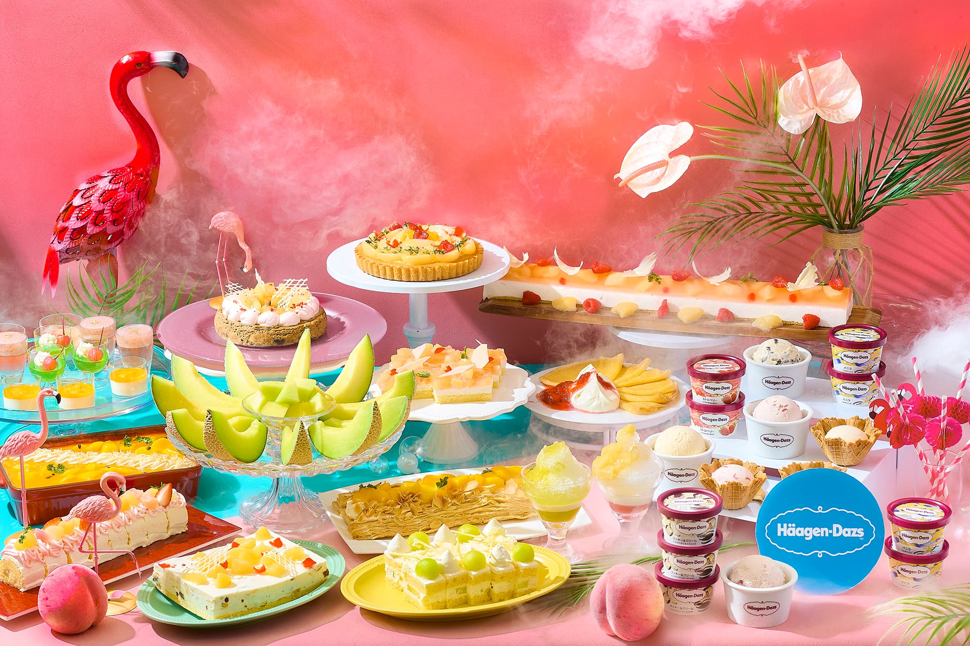 ピーチにメロンにハーゲンダッツと、もはやタイトルだけでヤバいスイーツブッフェ。フレッシュメロンの食べ放題をはじめ、メロンやピーチを使用したケーキやパイ、ムースなどが大集合します。