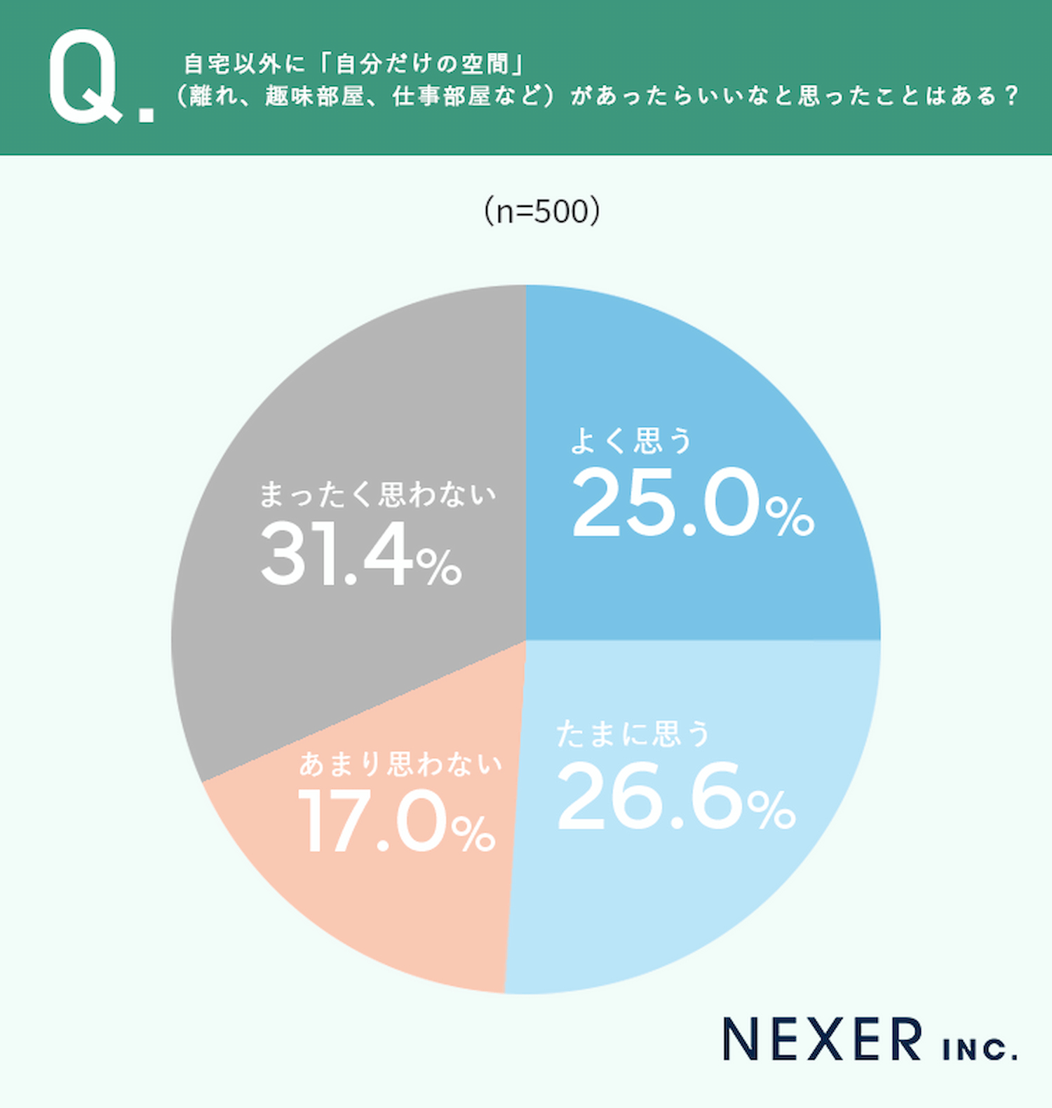 全国の男女を対象にした株式会社NEXERと中古プレハブ専門サイト「U-prefab」による調査では、51.6%が「自宅以外に “自分だけの空間” が欲しいと思ったことがある」と回答しています。