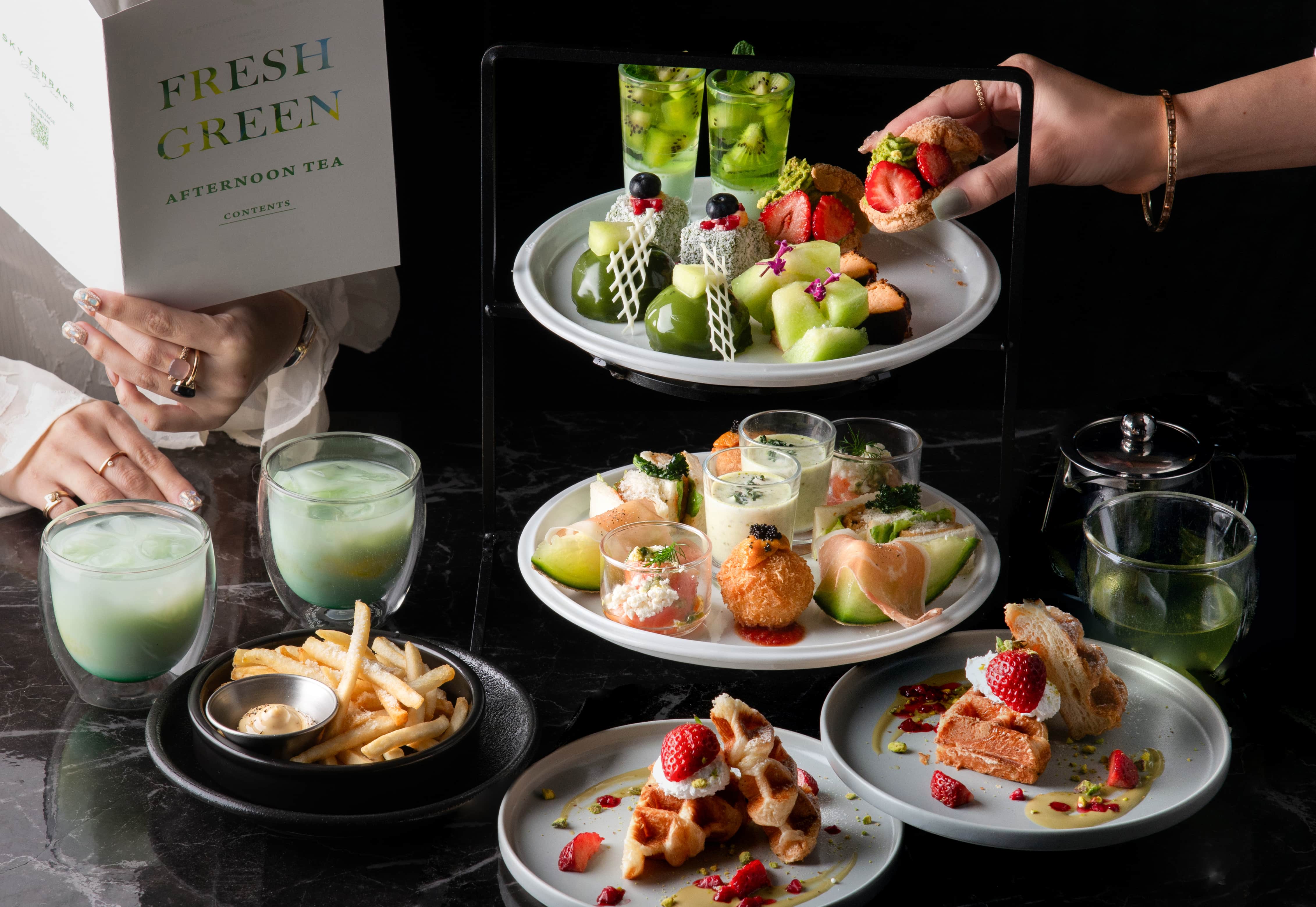 国産メロンと抹茶を贅沢に使用した、グリーンがテーマのアフタヌーンティーです。