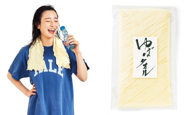 本物の「ゆば」のようなしわ感が施されたフェイスタオル。ふんわりやわらかな肌ざわりで、洗うたびに味わいが出てなじんでいきます。ゆばっぽいパッケージに入って届くのもポイント高い!