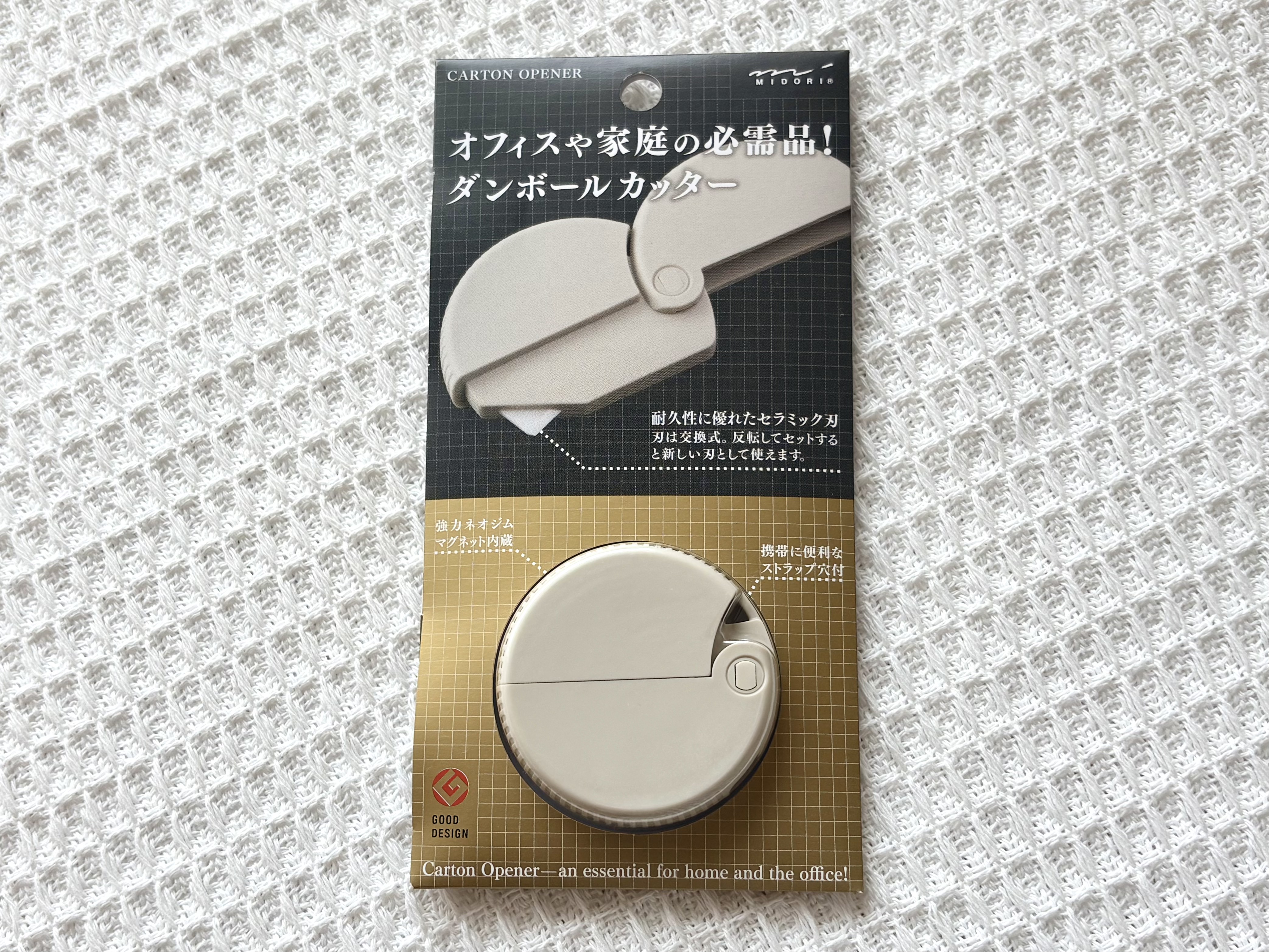 小さなボディに使いやすい工夫がギュギュッと詰まっている、ミドリのダンボールカッター。グッドデザイン賞に輝いているというのも、使ってみれば納得です。