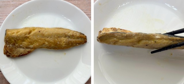 ノルウェー産のサバを骨までそのまま食べられるほど柔らかく焼き上げ、砂糖と塩のみで味付けしたという「フィレ焼きさば」。