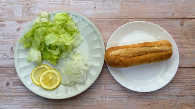 というわけで、用意したのはフランスパン、レタス、玉ねぎ、レモン。