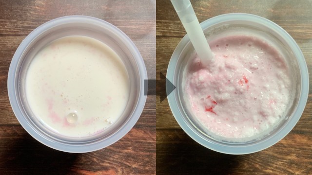 最初は、これじゃあミルクが多すぎるのでは……と不安になりますが、混ぜているうちにフラッペらしい見た目になるのでご安心ください。