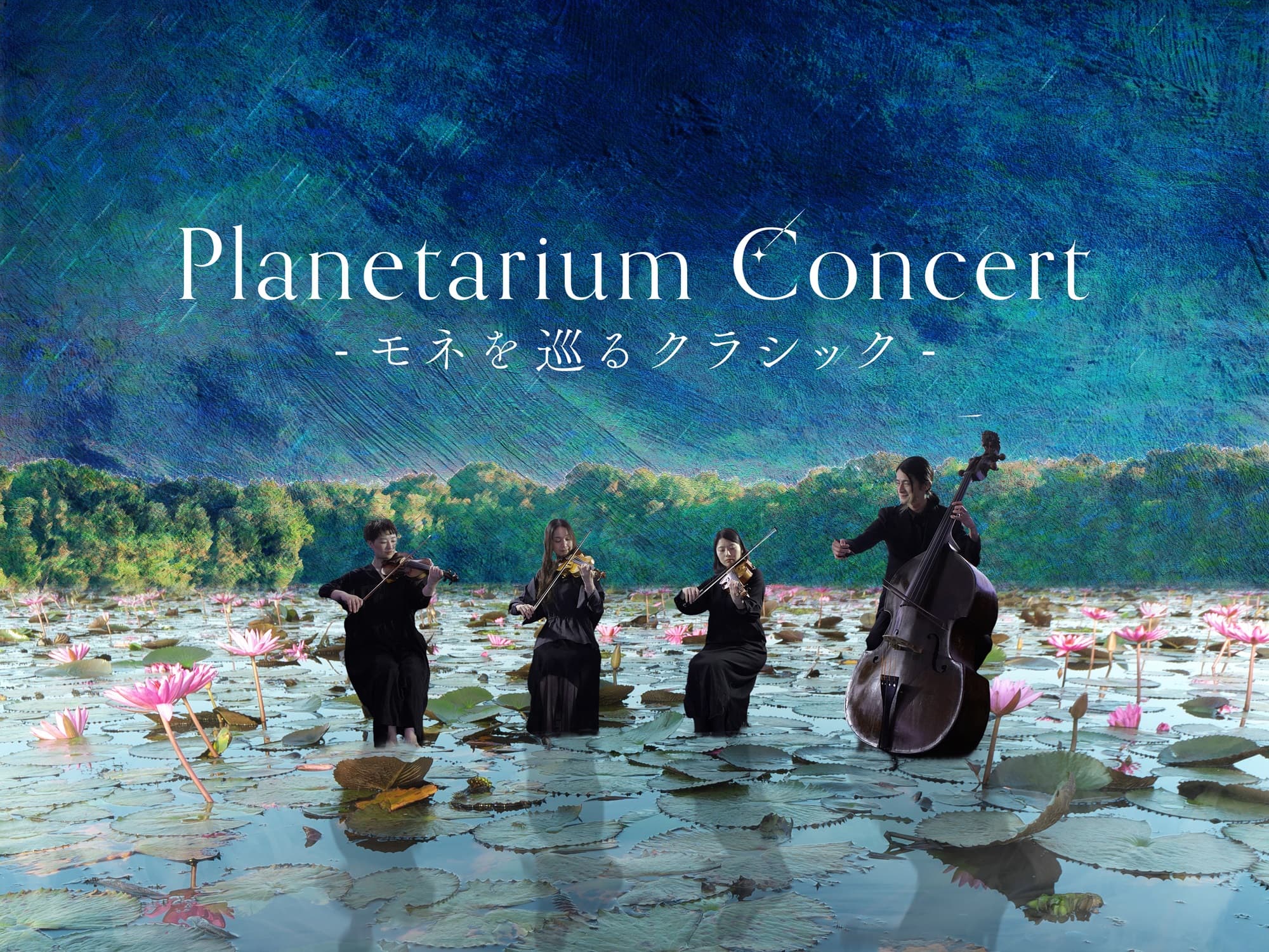 コニカミノルタプラネタリアTOKYOでは、モネが生きた世界をクラシックの名曲で巡るイマーシブ・コンサート「Planetarium Concert -モネを巡るクラシック-」を実施中。360度方向に広がるモネの絵画世界を眺めながら、弦楽四重奏による生演奏を楽しめちゃうの!