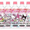ハローキティさんと「桃の天然水」がコラボしたペットボトルがかわいい♪ キティさんといろんなサンリオキャラがHUGしてるデザインなの!!!